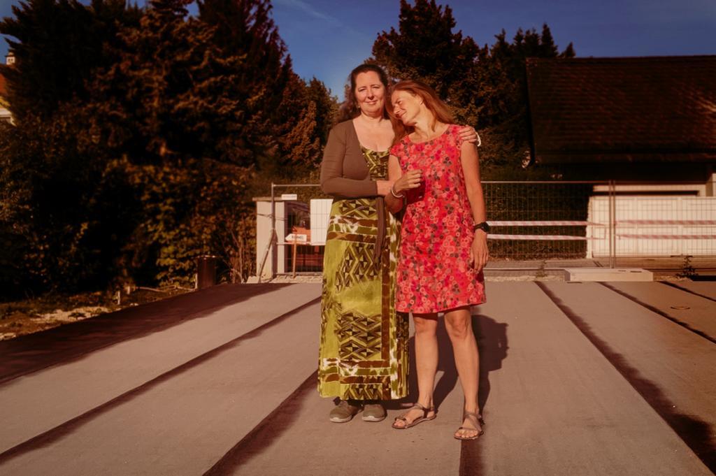 In den 1980er-Jahren wurden meine damalige Nachbarin Martina und ich auf einem Hausfundament fotografiert. Und weil sich 2022 die fundamentale Gelegenheit ergab, haben wir mehr als 40 Jahre später dieses Bild von uns „aktualisiert“.